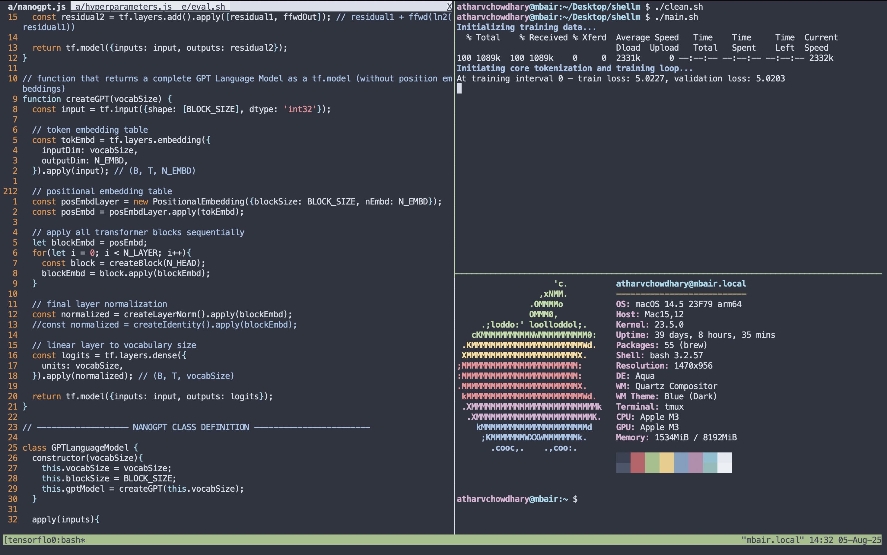 Two implementations of the NanoGPT architecture in TensorflowJS, with both the Layers and Models API.